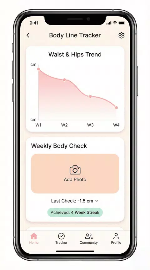 The app provides advanced analytics with progress charts that allow users to visualize their transformation, compare posture consistency with waistline reduction over time, and track measurements in both centimeters and inches.